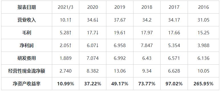 财务数据方面,2016年到2020年,营业收入从246.2亿美元下降到192亿美元,净利润从46.87亿美元上升至47.3亿美元;营业收入下降了22%,利润上升了0.91%;在利润大幅下滑的同时还能保持利润相对稳定,这也表明在过去几年里其经营效率在不断提升。而更加值得注意的是,其经营性现金流净额一直保持稳定并大于其利润,这也表明未来仍有较强的盈利预期。而从2021年第一季度的数据来看,利润和营业收入均有所回升,这也表明随着疫情得到控制,其业绩也在逐渐恢复。