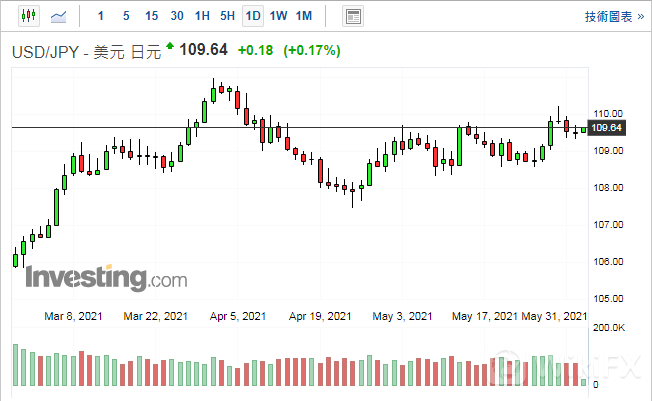 亚市盘中美元兑日元延续上一交易日(6月1日)的震荡行情,截止目前美元兑日元在109.60一线徘徊。1小时级空头,日内看多。操作上,上方阻力关注109.80,下方短线支撑关注109.40水平。(仅供参考)