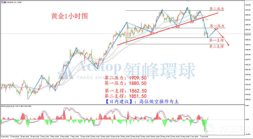 空单:1880.5附近尝试做空,止损1887.0,目标1870.0、1862.0附近。