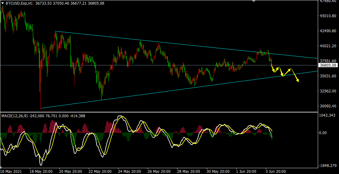 从比特币1小时图来看,比特币收敛形态理论上已经完成,接下来便是围绕突破的问题,预期还是下破不变,行情走势中间可能不会太顺利,但目前还是可以做空博一下向下突破。