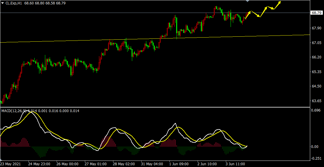 从WTI原油1小时图来看,原油新高后的问题在于自身未能再大幅向上拉开距离,而且自身波段也并不强势,目前原油平均波幅不大看好短线即可,有相对一定的波幅便要离场。