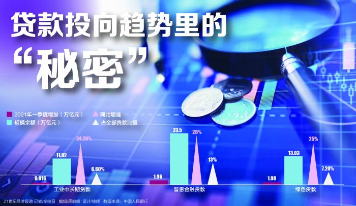 从政策环境而言,曾刚对21世纪经济报道记者表示,一是,经济发展结构调整的需要,“十四五”规划确定经济结构调整方向走向自主科创、产业链升级、乡村振兴、绿色金融等,实现高质量可持续发展。二是,围绕国家政策调整重点,货币政策、银行信贷政策都会强化对银行约束,包括普惠金融和制造业贷款增速、绿色贷款占比等可能会有更加细致的监管要求,从而推动银行信贷变化。三是,监管层对于金融支持实体经济出台了一系列优惠支持政策。在再贷款、再贴现之外,还创设了普惠小微企业贷款延期支持工具和普惠小微企业信用贷款支持计划两个直达实体经济的货币政策工具。