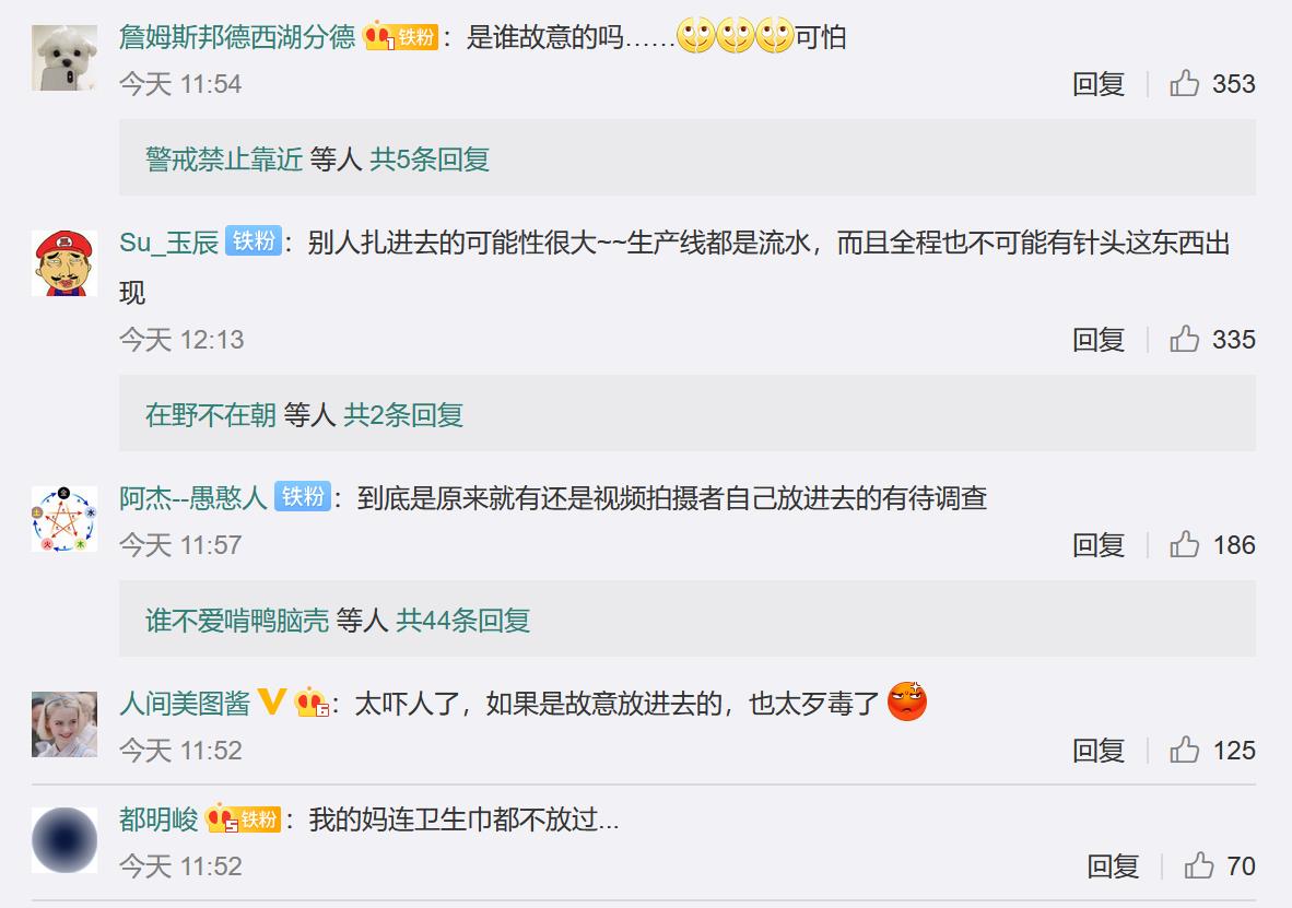 有网友提出疑问:“是从外面扎进去的还是生产环节问题,蹲一个调查后续。”还有网友则认为,“生产线里出现这种问题概率不大,人为的可能性更大吧。”