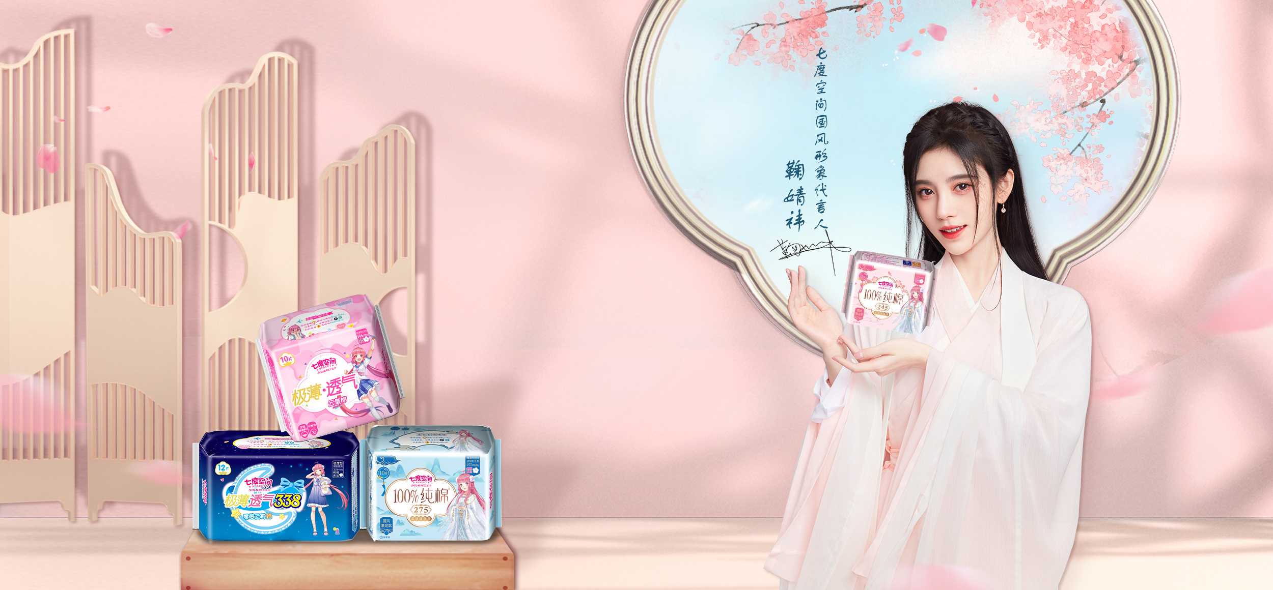 公开资料显示,创立于2002年七度空间,是恒安集团旗下的女性卫生用品品牌,其推出了多种系列的姨妈巾,除少女系列、优雅系列外,还有萌睡裤、动物君系列等年轻产品线。2021年4月,演员刘浩存官宣成为七度空间代言人。此前鞠婧祎为七度空间国风形象代言人。