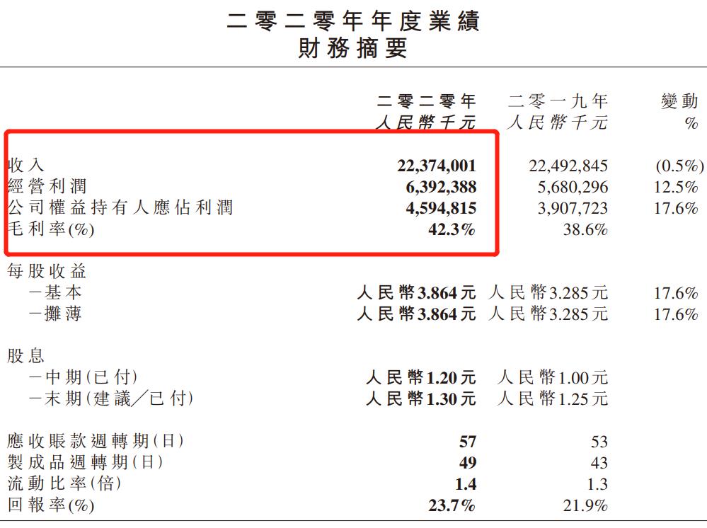 恒安国际2020年年报截图