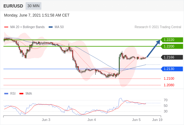 交易策略: 在 1.2130 之上,看涨,目标价位为 1.2200 ,然后为 1.2220 。