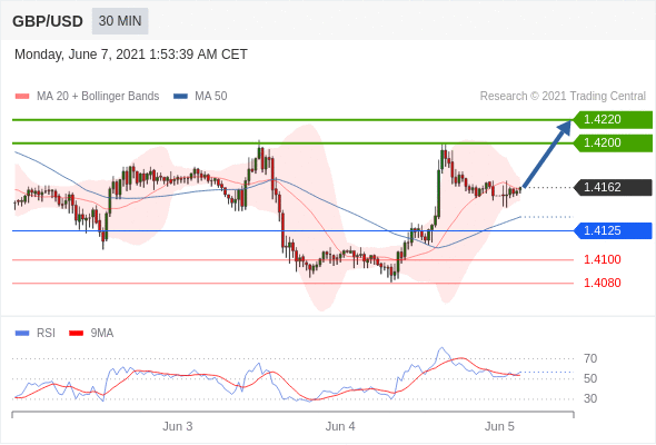 交易策略: 在 1.4125 之上,看涨,目标价位为 1.4200 ,然后为 1.4220 。