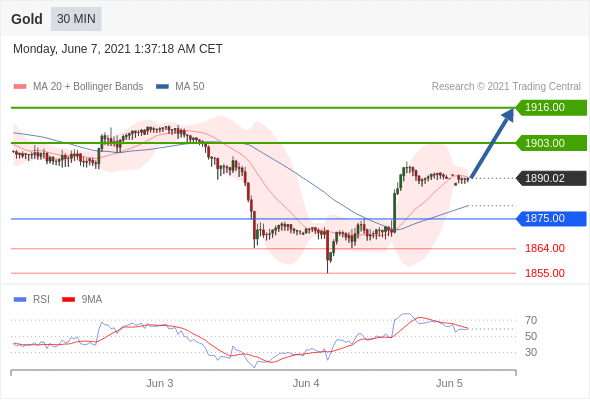 交易策略: 在 1875.00 之上,看涨,目标价位为 1903.00 ,然后为 1916.00 。