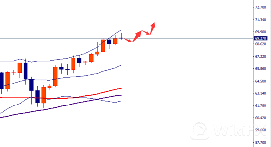 原油:68.00-68.50做多,止损67.20,止盈69.80、70.30、71.00