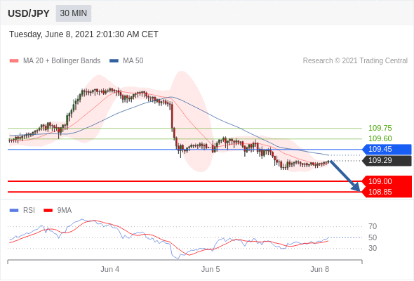 交易策略: 在 109.45 之下,看跌,目标价位为 109.00 ,然后为 108.85 。