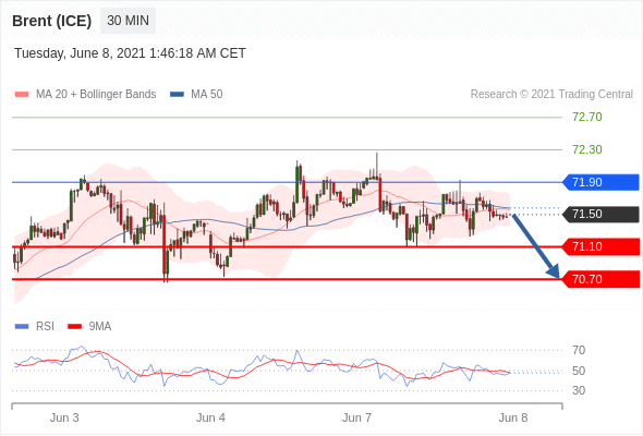 交易策略: 在 71.90 之下,看跌,目标价位为 71.10 ,然后为 70.70 。