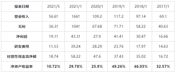 财务数据方面,从2016年到2020年,其营业收入上升了140.2%,净利润上升了159.9%,利润增大于其营收,这也表明过去几年其经营效率一直在提高。另外,该公司一直保持较高的研发力度,研发投入占比营业收入每年均超过23%以上,这是其未来业绩能够保障的根本。更加值得表扬的是,其经营性现金流净额一直大于其利润,并保持稳定上升。从2021年的最新经营数据来看,营业收入和利润均有大幅回升,未来还是值得期待的。