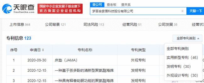 据悉,截至今年5月底,梦百合共持有专利总数106项,其中外观设计专利46项,实用新型专利30项,发明专利30项。从数据来看,梦百合所申请专利不太多,但是相对比较均衡,后期还有极大的发展空间。