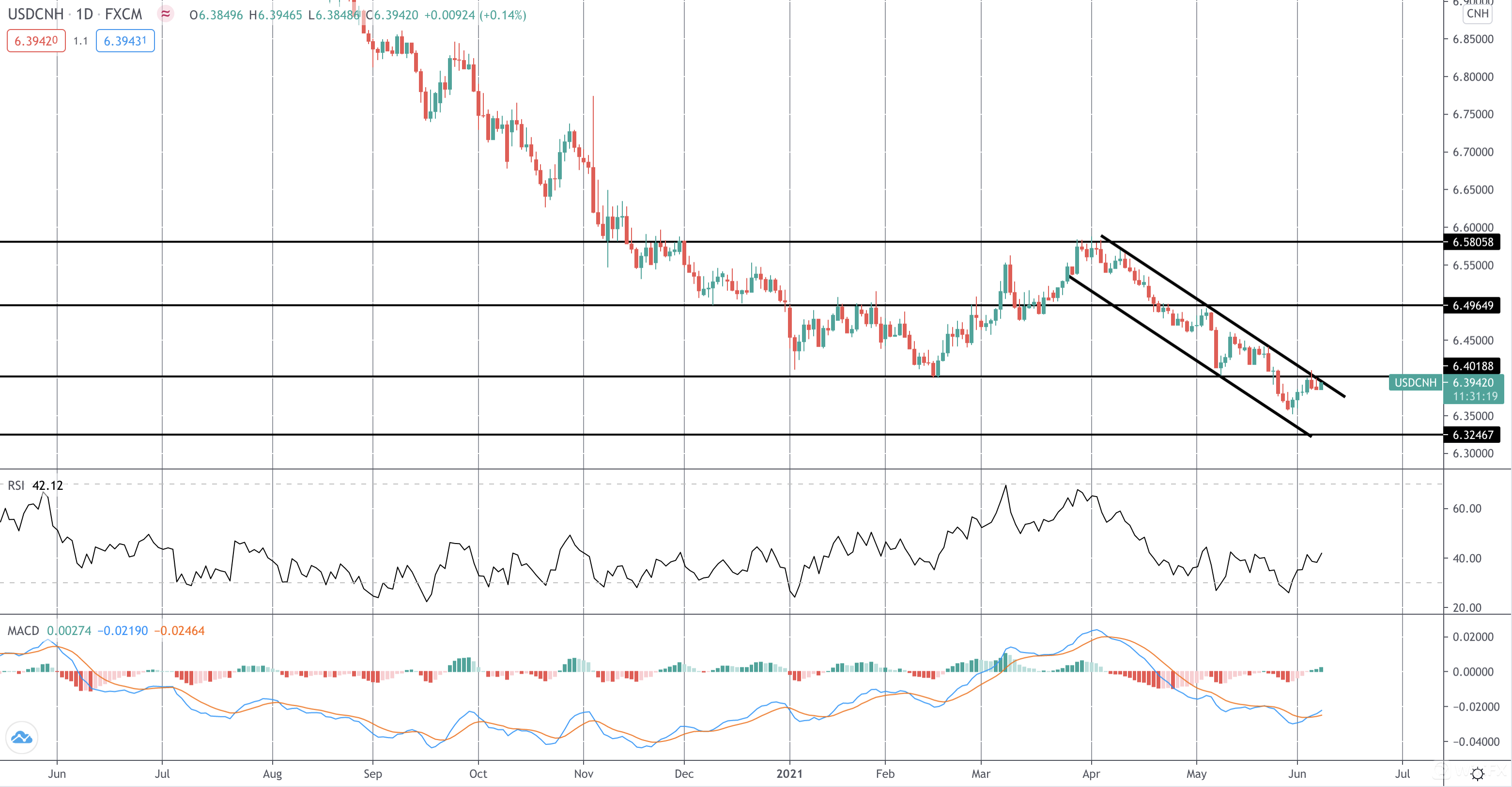 USDCNH 重新测试破碎的支撑