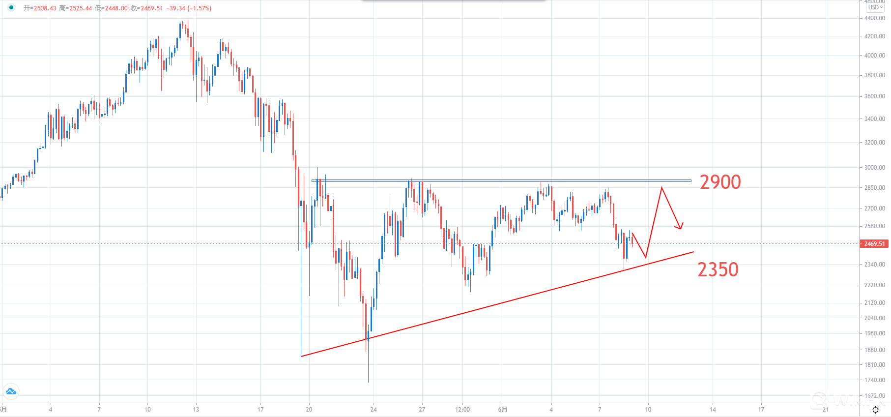 【交易策略】:建议投资者可考虑2400附近做多,止损2250附近,止盈2700附近。