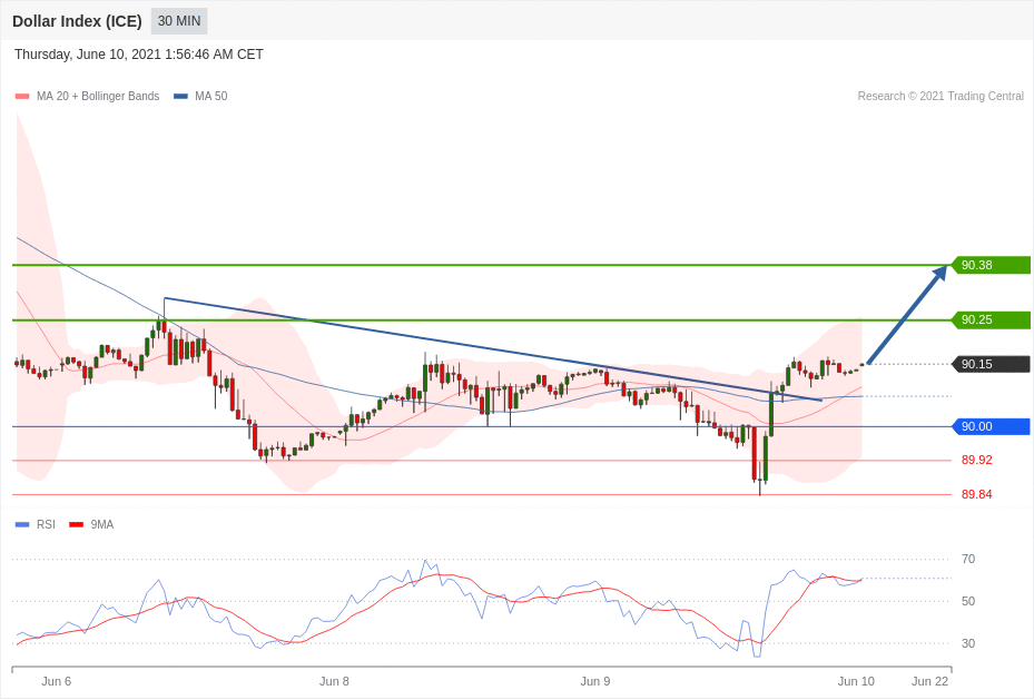 美元显示出企稳迹象,洲际交易所美元指数保持在90.00水平以上。