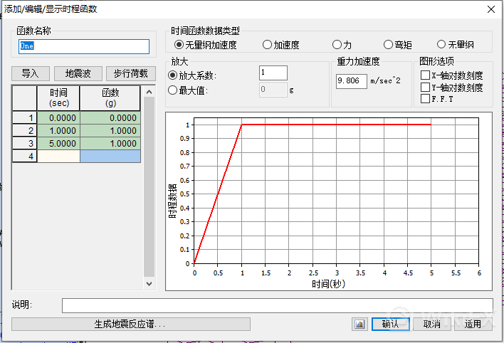 定义一个无量纲加速度曲线,让结构自重按照时程方式加上去。