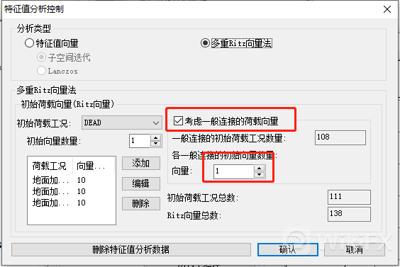 振型叠加法时程分析时,如果有隔震支座,最好用多重Ritz向量法,而且最好勾上“考虑一般连接的荷载向量”。否则,隔震支座轴力可能不准确。
