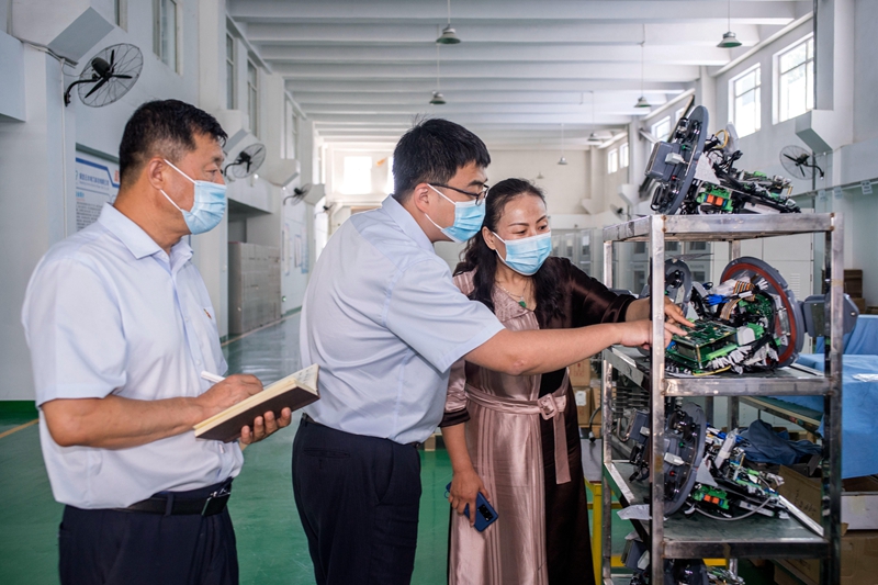 今年以来,中国银行河北保定北城支行积极推广普惠金融,通过开展“百行联千企”、 授信产品专场推介会、与包联企业一对一金融帮扶等活动,全力满足辖内中小微企业用贷需求。截至目前,该行已累计发放普惠金融贷款2000万元。图为该行客户经理在保定市云木电力科技有限公司了解企业生产及用贷情况。 本报记者 刘志良 摄