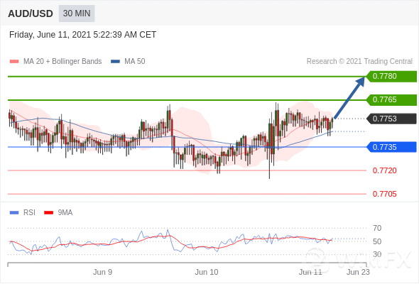 阻力位:0.7765,0.7780 支撑位:0.7735,0.7720