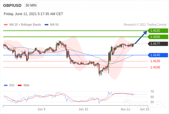阻力:1.4200,1.4220 支撑位1.4140,1.4120
