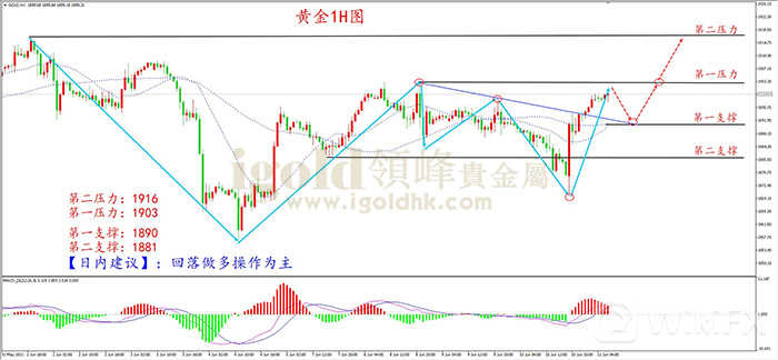 多单:1890.0附近尝试做多,止损1885.0,目标1896.0、1916.0附近。