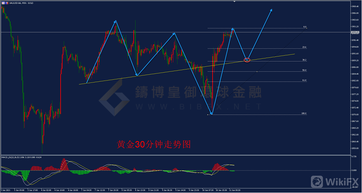 昨日(6月10日)晚间,美国劳工部公布美国5月CPI数据。数据显示,美国5月CPI数据继续维持上涨势头。其中5月整体CPI同比大涨5%,超预期的4.7%,增速创2008年8月以来最高。核心CPI同比增长3.8%,超市场预期3.5%,增速创1992年以来新高。尽管美国通胀数据持续上行,但美联储对此相对淡定。联储多数官员认为,目前的上涨是由于暂时性因素造成的,随着时间的推移这些因素会逐渐减弱。市场普遍预计美联储不会在下周联邦会议上收紧政策,因此黄金短线有较大概率继续上涨。