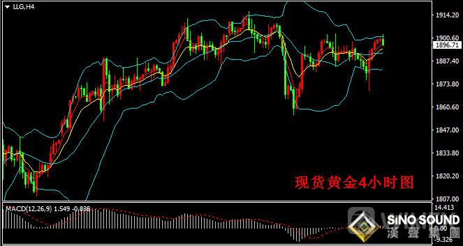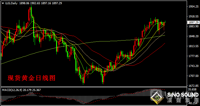 现货黄金日线图看,日内金价持续在1900关口附近激烈争夺,同时昨日金价收长下影线阳线,显示金价下方存在一定支撑能力。目前金价在5日和10日均线胶结处运行,总体看金价仍然维持在近一周振荡区域内运行。日线指标看,MACD指标正动能柱减小有所放缓,RSI指标维持60位置附近徘徊。