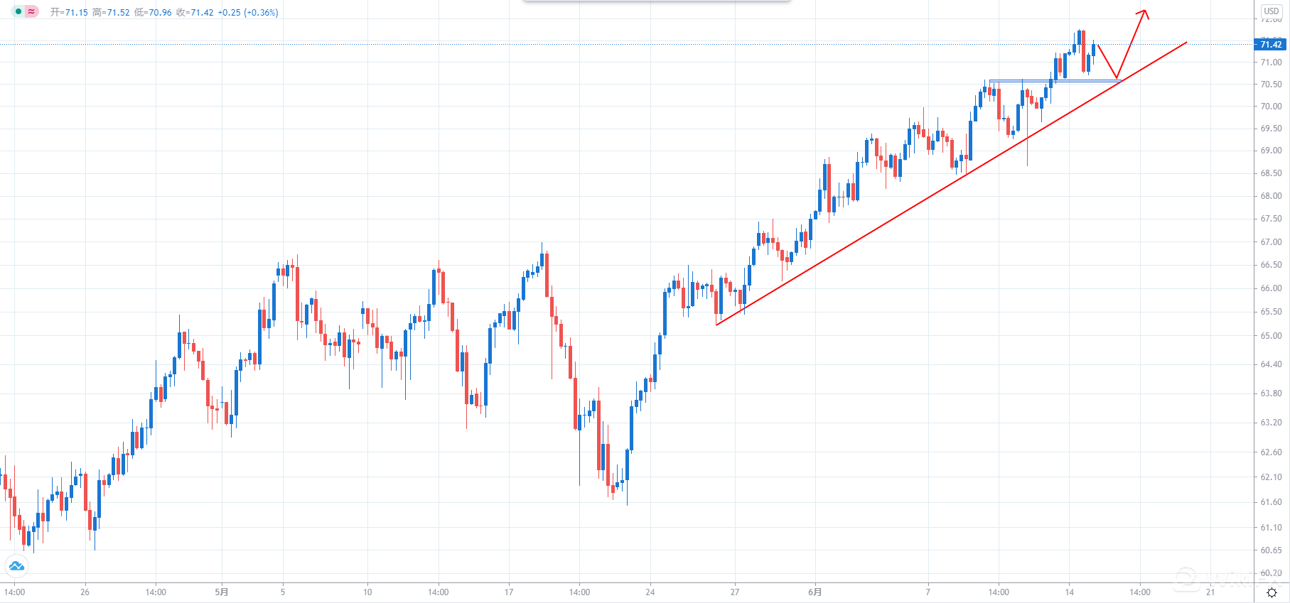 【交易策略】:建议投资者可考虑70.50附近做多,止损69.00附近,止盈73.00附近。