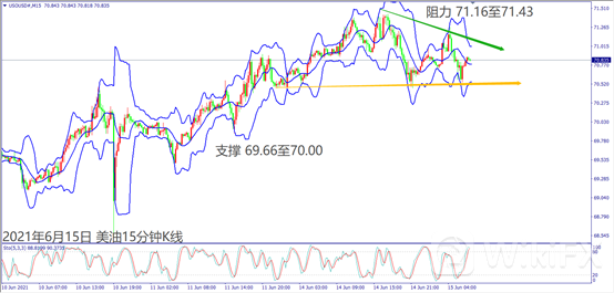 受到上周三大能源报告调升石油需求带动油价续创波段新高,昨日(14日)亚洲市场买盘推升美油冲高至71.39美元。晚间彭博调查美国零售销售报告显示消费者需求连续第二个月降温,美国道琼斯跌逾350个点,拖累美油回落至70.50美元附近整理。