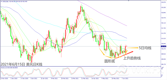 上周一(7日)美国基建计划并没有如期公布完整内容,也让市场抛售美元造成价格再度掼破90关口。随着美国国会官员称不会使用加税来增加基建计划措施,带动美元指数重回90关口。上周五(11日)受到印度变种病毒影响,出现已经施打疫苗的英国人民因此确诊死亡,也让镑美急跌90个点拖累欧美转跌,美元指数重新站回90.50之上,也让美元再度化解破底危机。