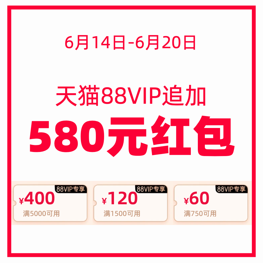 据悉,每位88VIP用户都能同时领三张券:满5000减400、满1500减120和满750减60,合计580元,门槛更低、优惠更大,大家可任选使用。