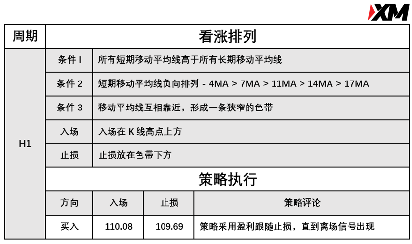 入场价格110.08,止损109.69,策略采取跟踪止损。