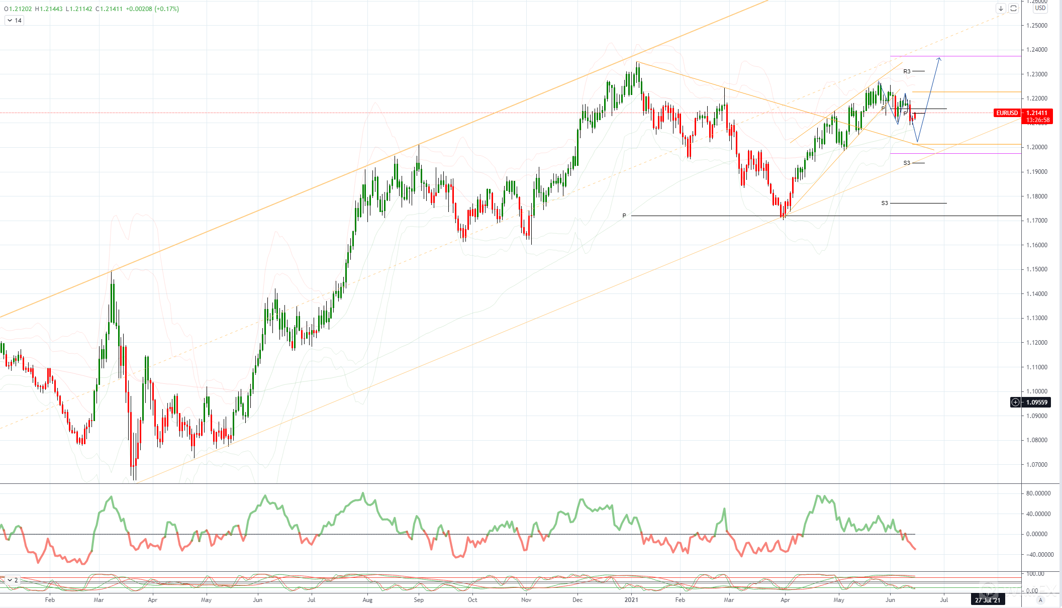 EURUSD 日内偏差:看跌低于 1.2150 看涨高于