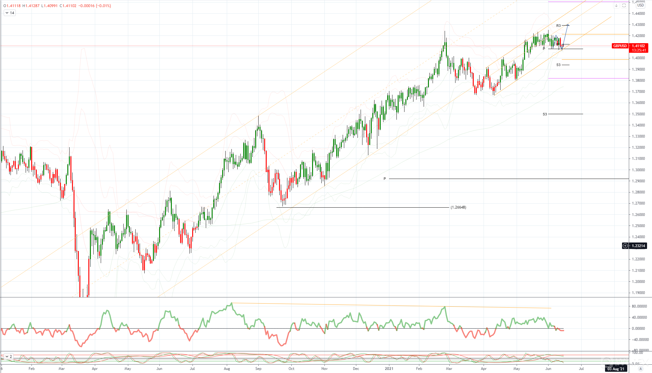 GBPUSD 日内偏差:高于 1.41 看涨低于看跌。