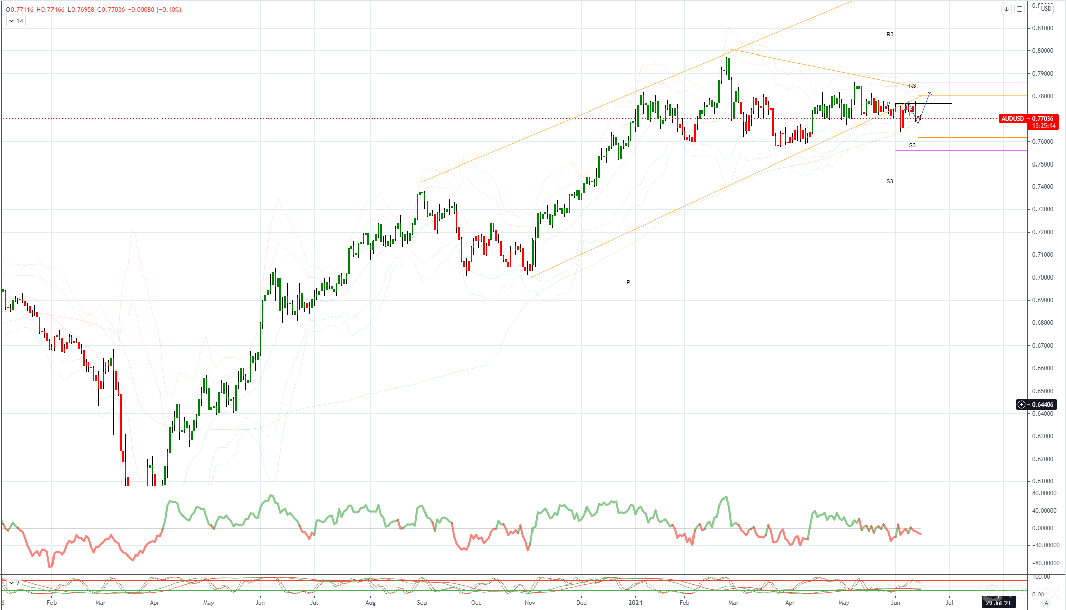 AUDUSD 日内偏差:看跌低于 0.7790 看涨高于