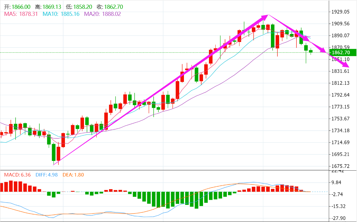 金价受美联储加息预期打压大幅回落,周一晚间一度触及1845近期低点,破位下行走势明确,MA均线高位形成死叉后发散下行构成技术阻力,午后反弹止步于1869,回调风险进一步加大,上方重要阻力下移至1870附近,建议反弹遇阻后逢高做空。 稳重者:入场位1869-1875,止损1882,止盈1859。 激进者:入场位1865-1872,止损1879,止盈1854。
