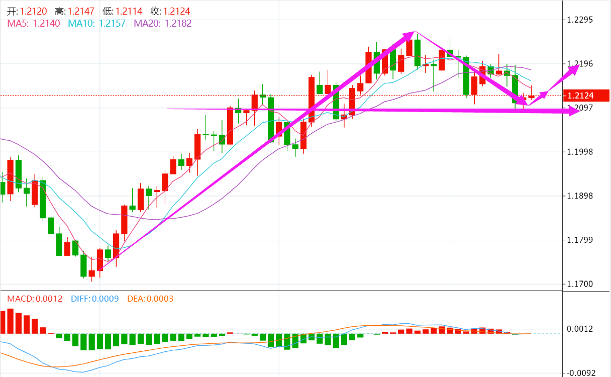 欧美汇率触及1.2260高点后受阻回落,短线止跌于1.2100关口附近,下行动能减弱迹象明显,午后回升至1.2125高点,左侧盘整区间构成形态支撑,目前维持高位震荡盘整格局,中期攀升走势未改,建议回调止跌后逢低做多。 稳重者:入场位:1.2030-1.2080,止损1.1980,止盈位1.2130。 激进者:入场位:1.2060-1.2110,止损1.2010,止盈位1.2150。