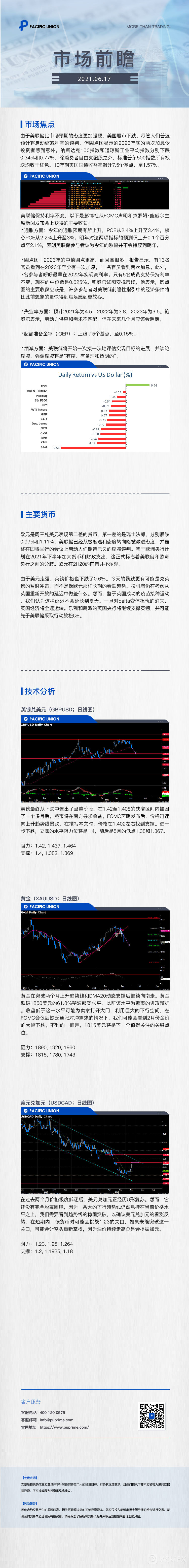 由于美联储比市场预期的态度更加强硬,美国股市下跌。在外汇市场方面,欧元是周三兑美元表现第二差的货币,第一差的是瑞士法郎,分别暴跌0.97%和1.11%。由于美元走强,英镑价格也下跌了0.6%。今天的暴跌更有可能是兑英镑的暂时冲击,而不是像欧元那样长期的看跌趋势。【更多市场动向,请登陆PACIFIC UNION官网-市场报告】