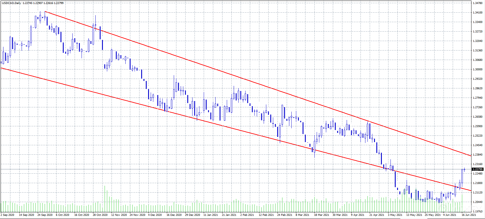 加拿大周三公布的通胀数据高于预期。此外加拿大的价格压力正在上升,但分析师表示这只是一个暂时现象。在过去的三个月,整体CPI年化增长率高达4.4%。此外美联储利率决议中,利率与债券计划预期没有变化,尽管美联储的新措辞并不意味着政策即将改变,但确实为美元提供了更多支撑,公布后,美元跳升至近六周高位。美元/加元最近突破1. 2145阻力后继续走高。昨日上涨0.76%至1.2277,盘中一度上涨0.82%,为2月26日以来最大涨幅;继续关注1.2333,这是4月21日加拿大央行会议后美元兑加元下跌的50%回撤位。