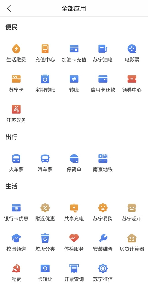 目前,苏宁金融APP支持全国400多个城市水电燃气缴费、党团费、物业费缴纳等便民服务,且支持消费购物,话费、流量费、娱乐充值,购电影票、购火车票,信用卡申请、还款等众多生活服务,功能多到你想不到。