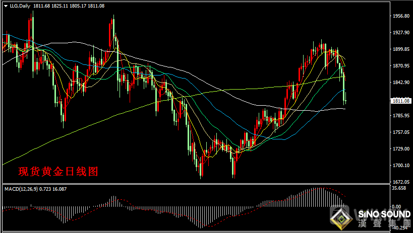 如金价在1800上方有效支撑时,短线做多,目标:1810、1815、1820、1830、1840。