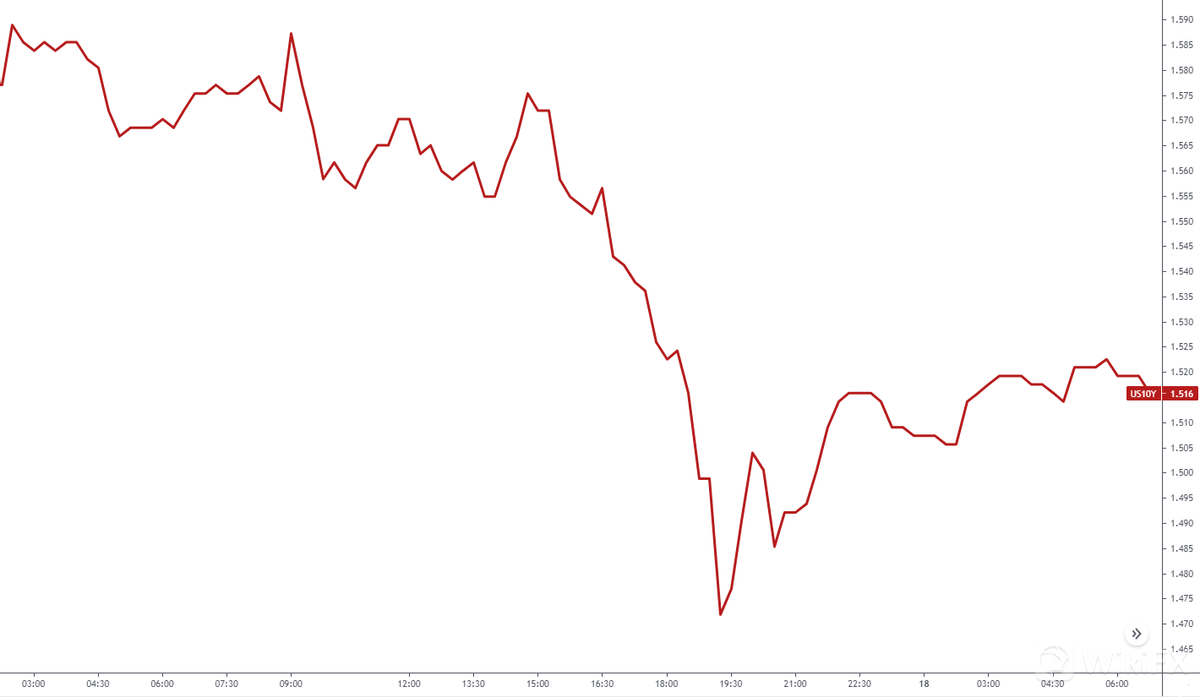 (美联储利率决议公布后10年期国债收益率走低)