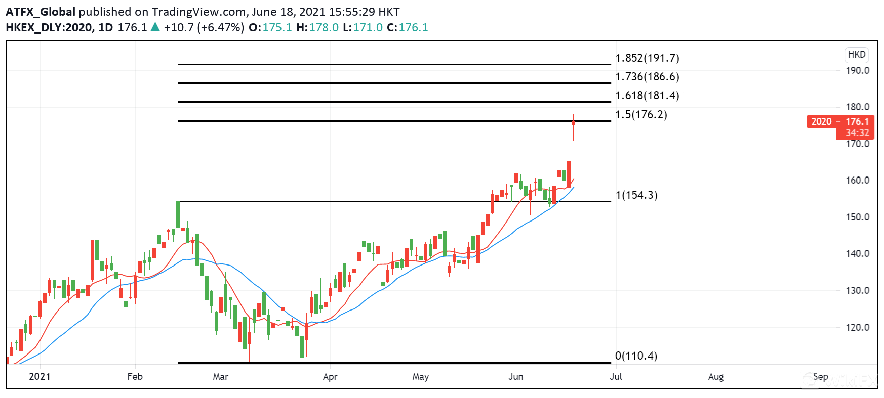 ATFX市场研究团队预期今年中国消费力量将较去年上升,配合国家政策支持居民扩大消费, 今年夏季消费旺季至10月消费黄金周周期,安踏体育(02020)销售增长及盈利将会扩大,预期今年下半年经营溢利和股东应占溢利均较上半年增长。建议167.4港元持有, 设止损151港元, 目标价186.6至191.7港元。