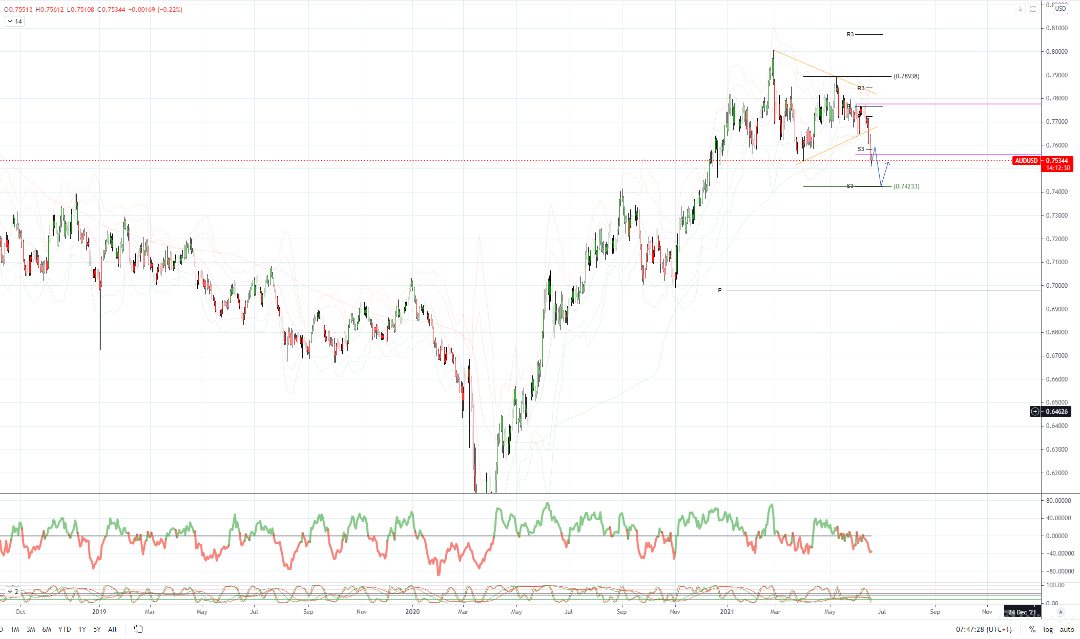 AUDUSD 日内偏差:低于 0.7790 看跌,高于看涨
