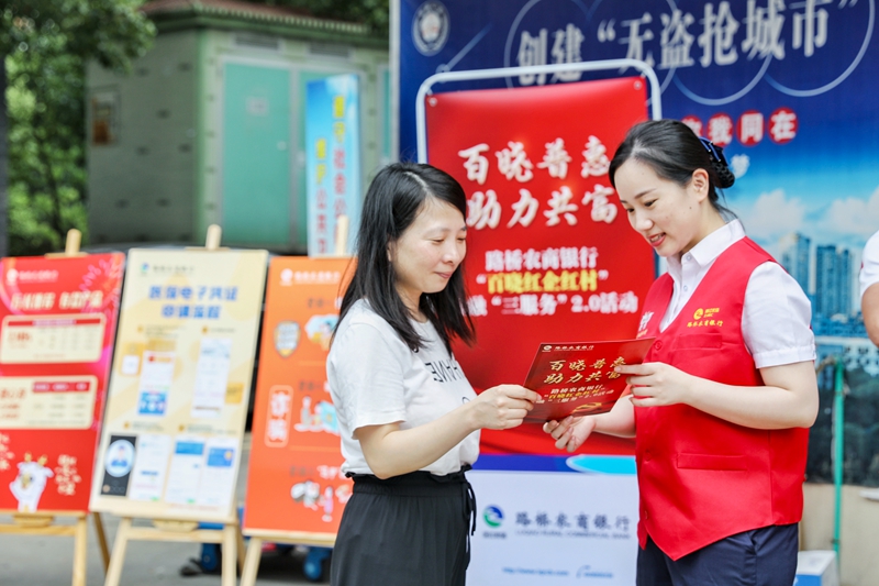 今年以来,浙江农信辖内路桥农商银行围绕金融“三服务”,深入开展全程服务、精准服务、联动服务,以全方位普惠金融打造老百姓身边暖心、快办的首选银行,争当乡村振兴、共同富裕的先行者。图为该行工作人员在马铺社区为居民普及金融知识。 本报记者 刘志良 通讯员 张玲晓 摄