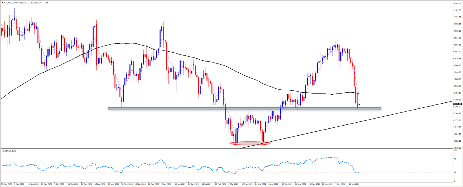 金价上周接连失守多道关键防线,日线六连跌,周线跌幅近6%或110美元,为2020年3月以来最大单周跌幅。