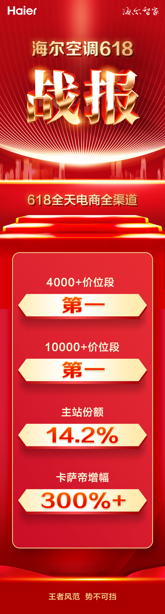 正是因为解决了用户的这些痛点,才有了618期间海尔空调的3项第一。截止6月19日0点数据显示,海尔空调实现全网4000+价位段第一,10000+价位段第一。此外,拿下空调行业第一单品的雷神者Ⅱ睡眠空调与智能枕联动的睡眠场景也成为618的明星场景,热销近千套。