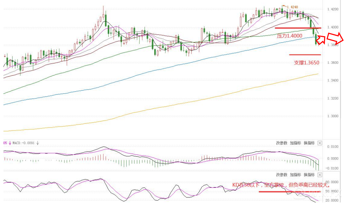 欧洲方面,上周,欧元兑美元下跌2.02%,主要是因投资者预计美国缩减非常规货币刺激计划的时间将早于预期提振美元,欧元遭遇抛售。因此,短线预计欧元仍然承压,但负乖离过大以后不排除盘中有技术性反弹。