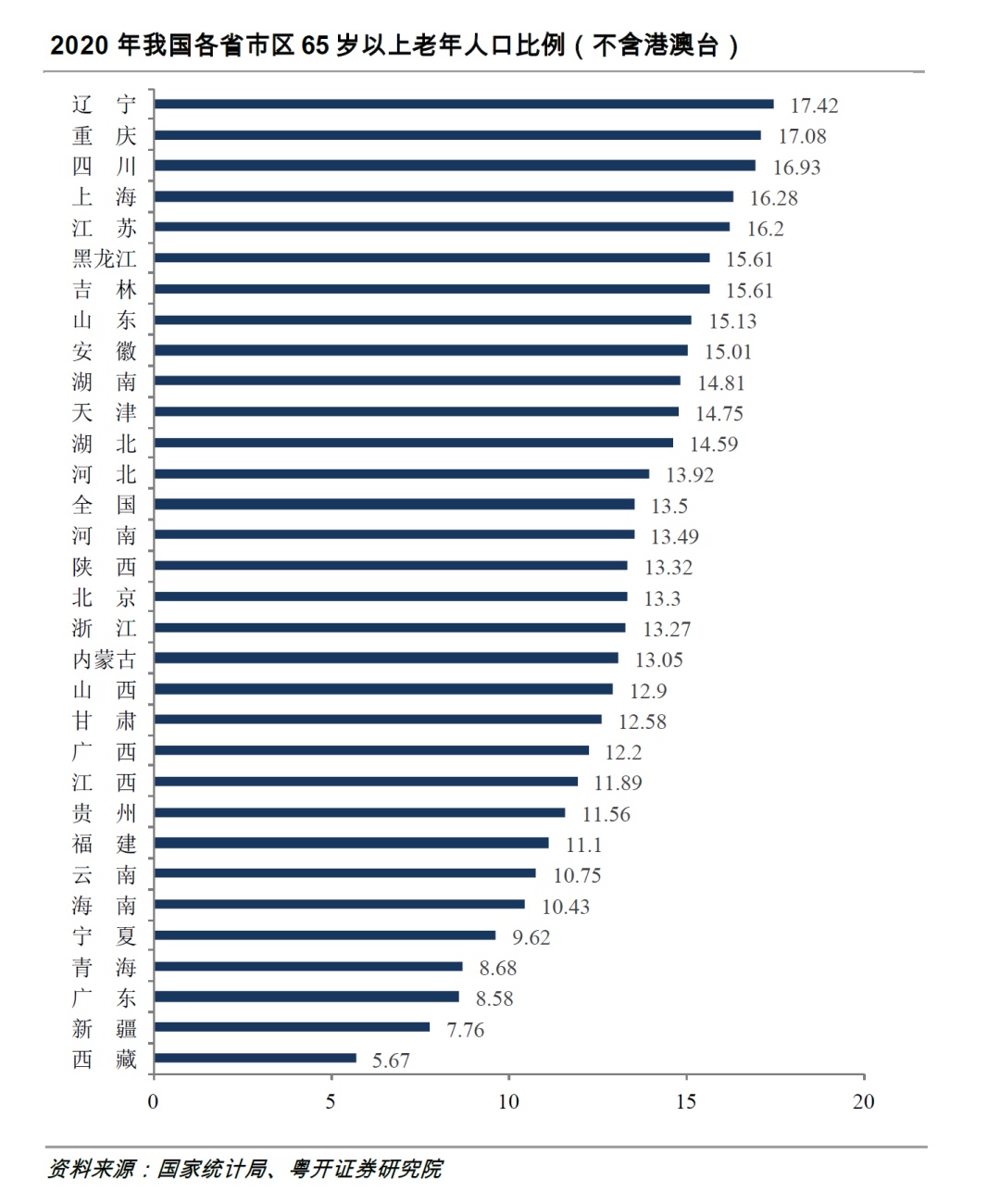 重庆、四川老龄化率分别高达17.08%、16.93%,仅次于辽宁,位居全国第二第三。
